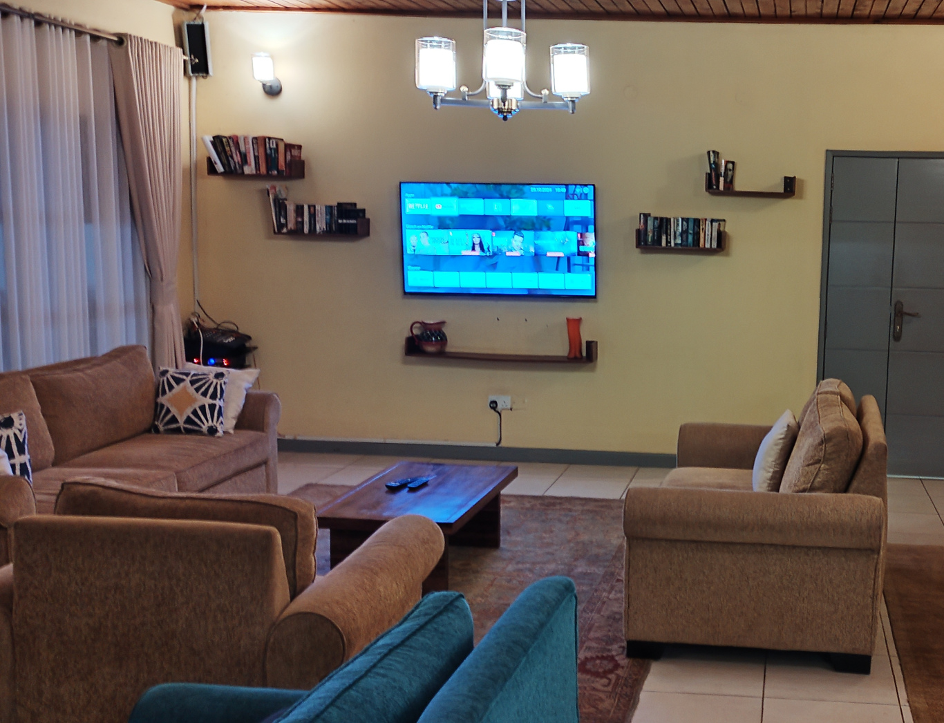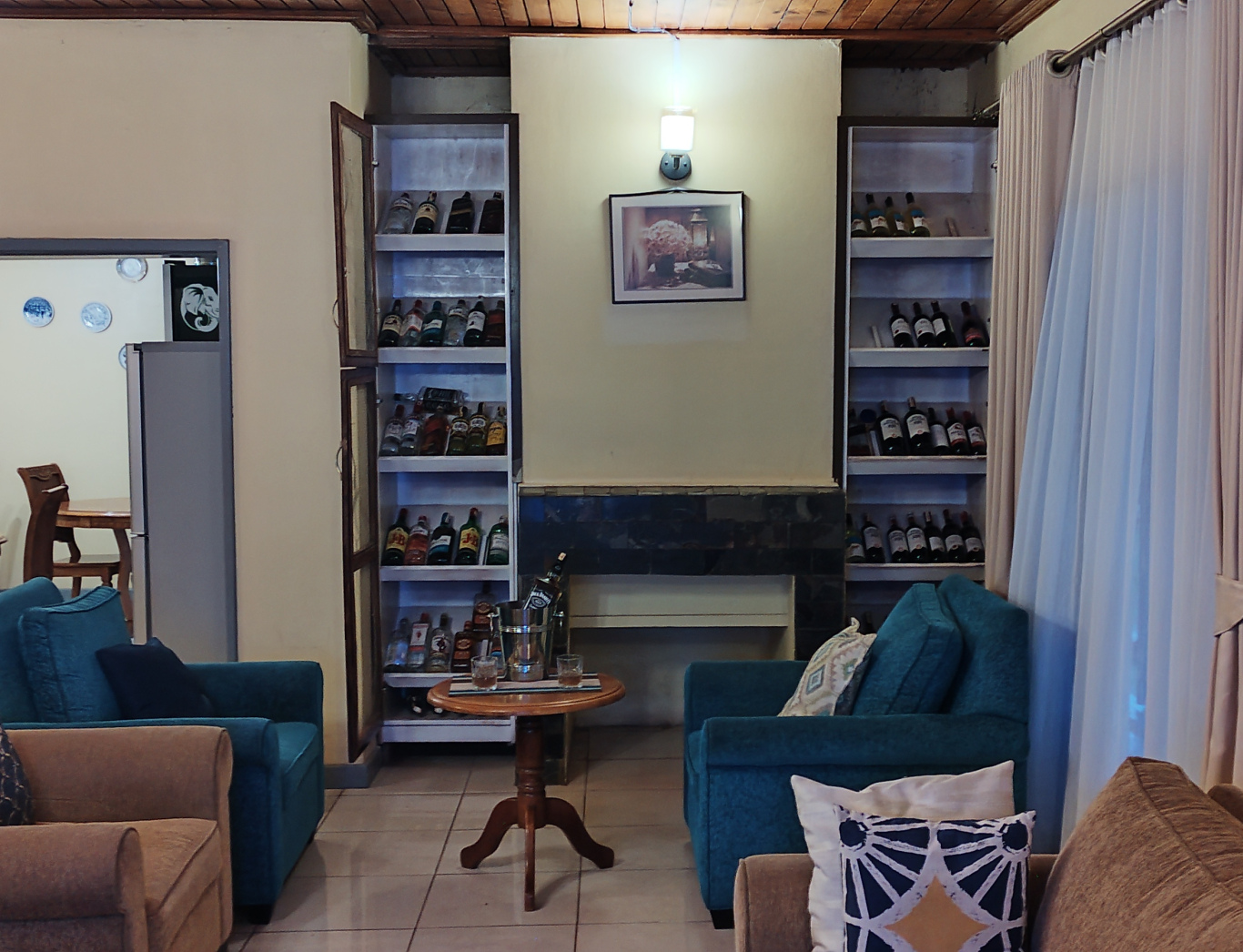 Cwezi by the Lake, nestled among towering trees and lush greenery, exudes warmth and serenity. Its rustic facade, adorned with vibrant flowers and winding vines, invites guests to unwind in harmony with nature. Inside, plush armchairs and secluded privacy create a cozy ambiance, while expansive windows frame breathtaking views of the tranquil lake. As the sun dips below the horizon, gentle lapping water and chirping birds lull guests into peaceful slumber, ensuring a restful retreat. With intimate charm and a secluded setting, Cwezi by the Lake is the perfect haven for those seeking relaxation and connection with nature